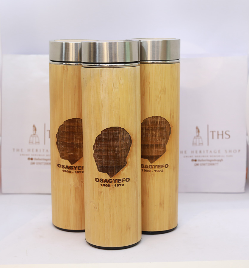 Premium bamboo insulated flask with a laser-engraved Osagyefo design. Eco-friendly, durable, and perfect for daily use or gifting.